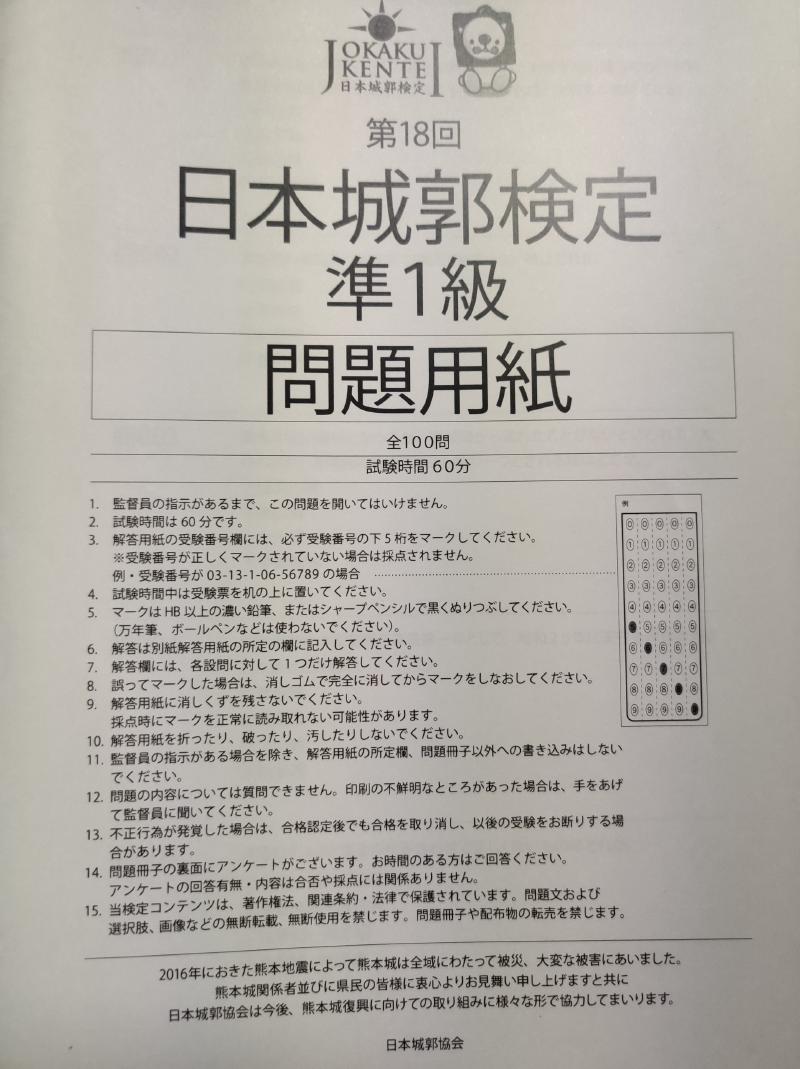第18回日本城郭検定の準1級に合格したので、本記事では準1級の受験対策や受験した感想について述べる。