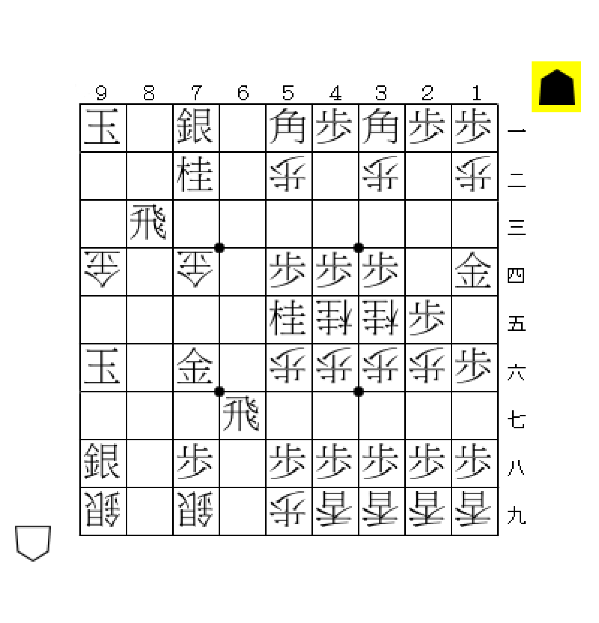それに対し、今回のプログラムで得られた駒配置は以下の通りである。いずれも限界まで駒追加または駒成をした結果である。結果図を眺めたらまだ駒を置けそうだったので、追加で桂馬も置けるだけ置いた。